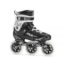 Platine en alu 6000 extrudée sérigraphiée - base 248mm - réglage latéral. Coque PU. Absorbeur de chocs. Cuff renforcé, coupe haute. Chaussure coupe sportive, rembourrage préformé, amortisseur de chocs. Fermeture laces et strap coup de pied avec boucle. Roues Fila 110mm / 84A. Roulements ABEC 9. info