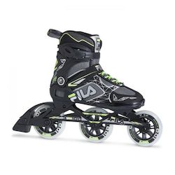Platine en alu série 6000 - 3 roues - base 275mm. Cuff haut. Chaussure Fila Air Flow, rembourrage préformé. Fermeture lacets, boucle et strap coup de pied. Roues Fila 100mm / 84A. Roulements ABEC 7. Axes métal, entretoises alu