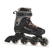 Platine en alu 6000 extrudée sérigraphiée - réglage latéral. Coque PU. Absorbeur de chocs. Cuff renforcé, coupe haute. Chaussure coupe sportive, rembourrage préformé, amortisseur de chocs. Fermeture laces et strap coup de pied avec boucle. Roues Fila 80mm / 83A. Roulements ABEC 7. Axes métal, entret