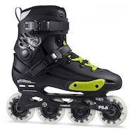 Platine en aluminium moulé sous pression - profil abaissé - ultra légère - 4 roues - 243 mm - réglage latéral. Coque PU, slider extrême. Cuff renforcé, coupe haute. Strap coup de pied boucle en aluminium micro réglable. Chaussure coupe sportive, rembourrage préformé, amortisseur de chocs. Roues Fila
