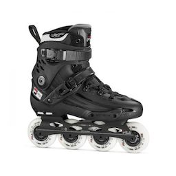 Platine en alu serie 6000 extrudée, 2 arches - profil abaissé - ultra légère - 243 mm - réglage avant-arrière et latéral. Coque PU, slider extrême. Absorbeur de chocs. Cuff renforcé, coupe haute. Strap coup de pied boucle en aluminium micro réglable. Roues Hyper Concrete 80mm / 84A. Roulements ABEC 7. infos + Axes course 8 mm - entretoises aluminium. PAS de frein dans la boîte