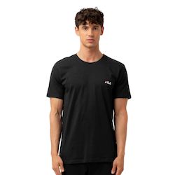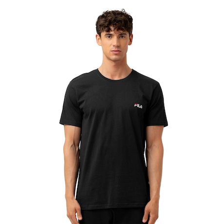 Classique et intemporel, ce Tee Shirt Homme Fila 100% coton est confortable et doux. Ce Tee shirt homme a une coupe regular fit, un col rond et des manches courtes. Il est disponible en tailles S, M, L, XL et XXL, et en 3 coloris Noir, Blanc et Bleu Marine.Le logo Fila est imprimé à l'avant, pour un