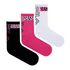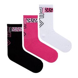 Optez pour le lot x3 de chaussettes de la marque Fila. Coloris : Noir/Rose/BlancChaussettes semi-hautesLogo Filaimprimé léopardComposition : 61% coton , 37% polyester , 2% élasthanne