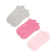 Lot de 3 paires de socquettes de la marque FILA !Coloris: Gris/RoseInscription Fila sur le talon Chaussettes bassesComposition: 75% coton, 23% polyester, 2% élasthanne
