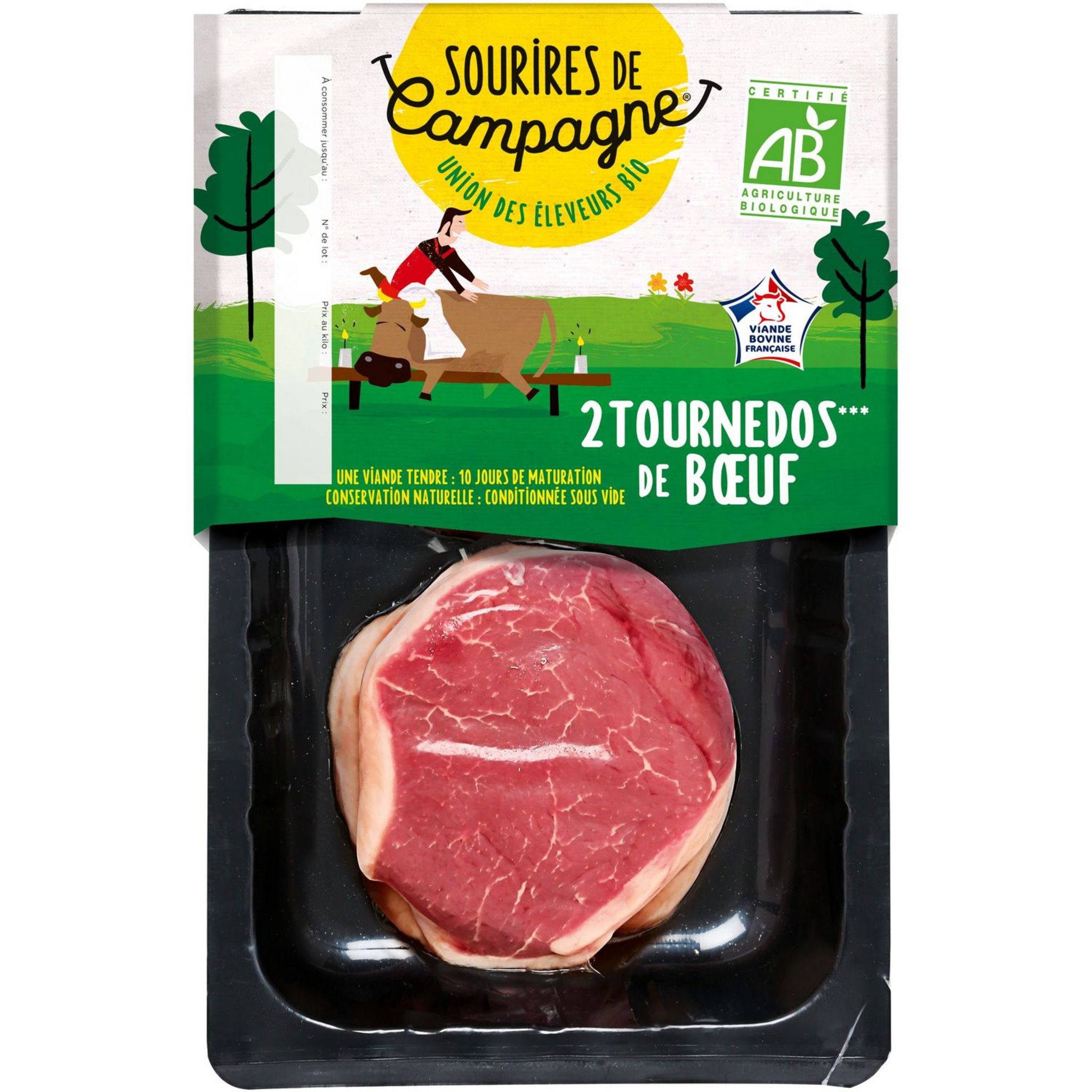Une viande tendre : 10 jours de maturation Conservation naturelle : conditionnée sous vide 2 tournedos*** bio, bardés, à griller