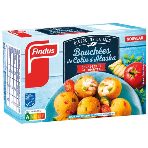 COLIN D'ALASKA 51%, courgettes 12%, chapelure (farine de BLE, sel, dextrose, levure, huile de colza), huile de colza, tomates séchées 7%, farine (BLE, riz), fibres de pois, oignons, amidon de maïs, sel, épices, plantes aromatiques.