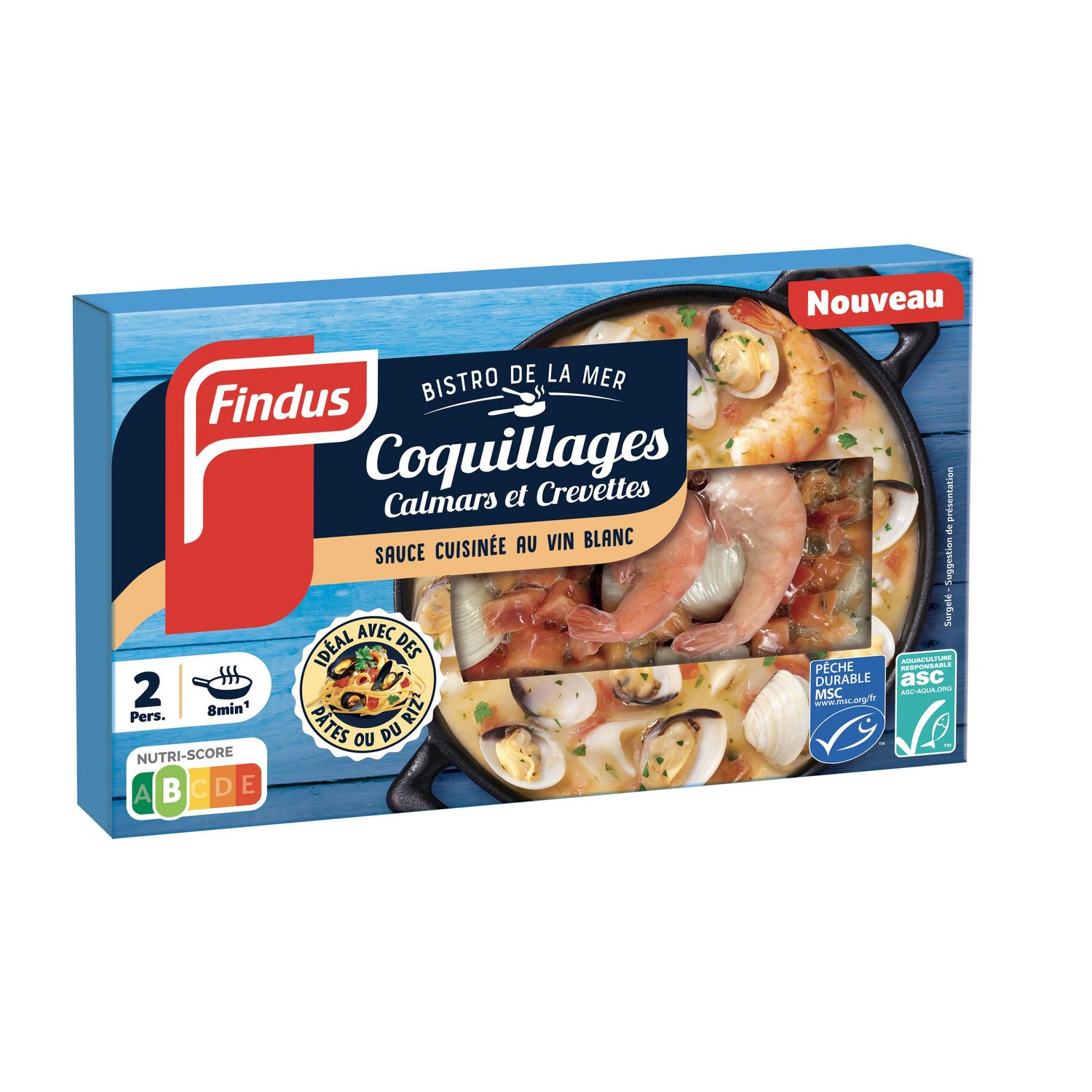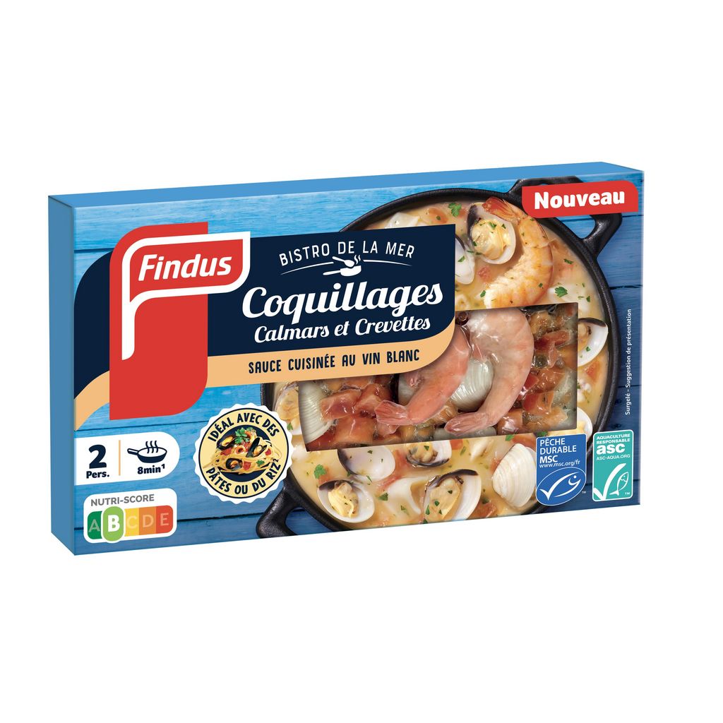 Savourez le délicieux goût de la mer ! Avec notre assortiment de fruits de mer cuisinés dans une sauce au vin blanc. Des coquillages, des calmars et des crevettes de qualité sélectionnés par Findus et issus d'un approvisionnement responsable. Cuisiné avec le plus grand soin en Italie, dans un authentique bouillon de fruits de mer et de poisson. Idéal pour accompagner vos plats de pâtes ou de riz. Facile à préparer en 8 minutes à la poêle.