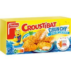 Avant de consommer votre poisson Findus, cuisez-le à coeur selon l'un des modes de préparation suivants : Au four : Préchauffez votre four à 200°C (four traditionnel). Placez les produits encore surgelés sur une plaque recouverte de papier cuisson et enfournez à mi-hauteur. Laissez cuire 20 minutes et retournez à mi-cuisson. C'est prêt lorsque vos Croustibat Crunchy* sont jaune doré et croustillants ! A la poêle : Faites cuire les produits encore surgelés dans une poêle chaude antiadhésive avec 2 cuillères à soupe d'huile, pendant 20 minutes à feu moyen. Retournez régulièrement au cours de la cuisson. C'est prêt lorsque vos Croustibat Crunchy* sont jaune doré et croustillants ! Adaptez le temps de cuisson à votre équipement.