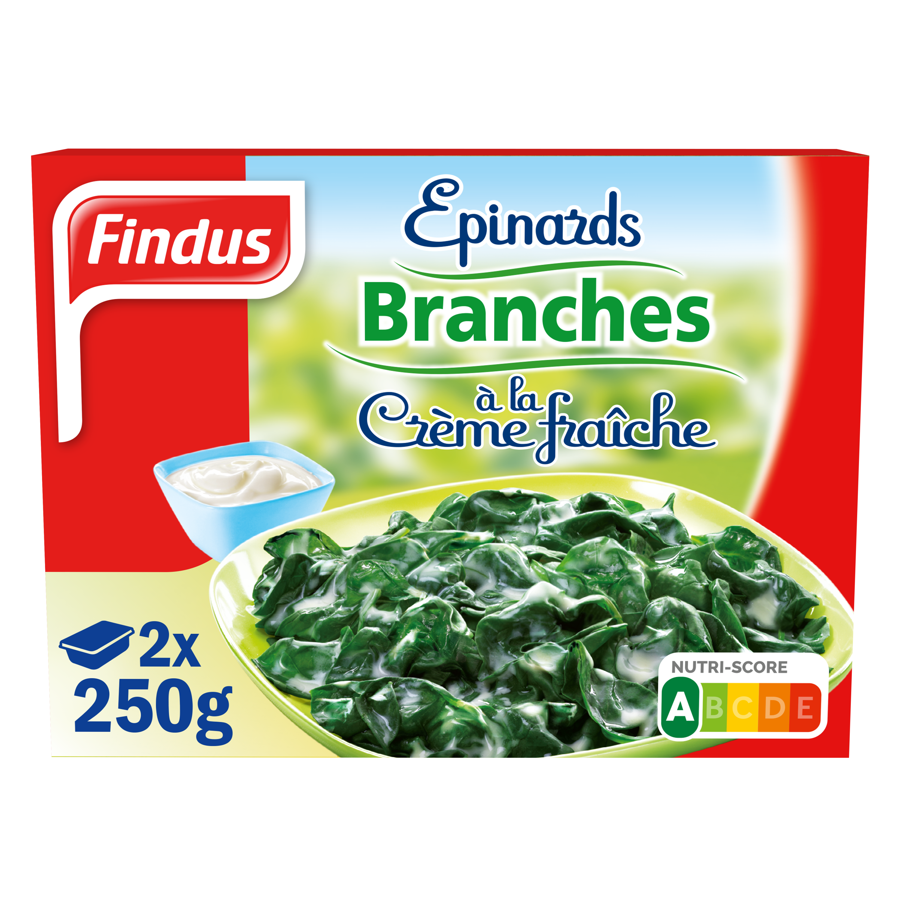 Epinards 69%, eau, CREME fraîche 7,0%, farine de BLE, LAIT écrémé en poudre, sel, sucre, arômes naturels (contient muscade). Traces éventuelles d'oeufs, poissons, crustacés, céleri, moutarde.