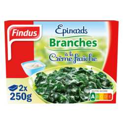 Epinards en branches à la crème fraîche, surgelés.