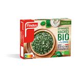 Épinards hachés à la crème fraîche, issus de l'agriculture biologique, surgelés.