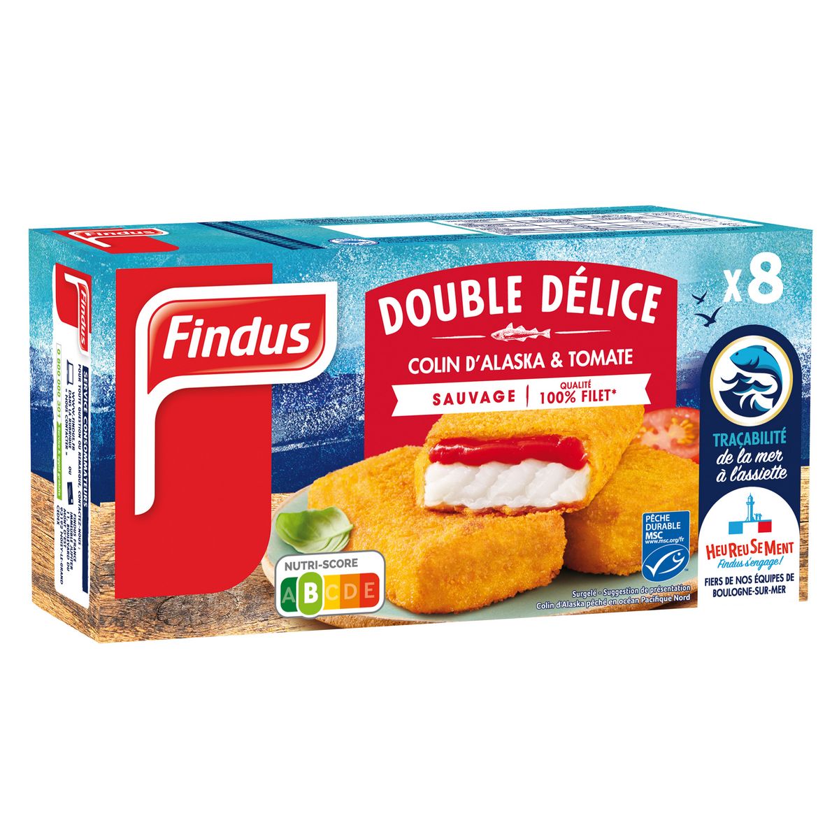 Double Délice, c'est l'alliance savoureuse d'une sauce tomate goûteuse et parfumée, et de la texture fondante du Colin d'Alaska qualité 100% filet, le tout enrobé d'une délicate panure délicieusement croustillante.