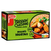 Au four, 12 min : Préchauffez votre four à 190°C (chaleur tournante). Placez les produits encore surgelés sur une plaque recouverte de papier cuisson, en prenant soin de les séparer les uns des autres. Enfournez à mi-hauteur du four et laissez cuire 12 minutes. Retournez à mi-cuisson à l'aide d'une spatule. C'est prêt quand vos nuggets sont dorés et croustillants. A la poêle, 10 min : Faites chauffer une cuillère à soupe d'huile dans une poêle. Déposez les produits encore surgelés et faites cuire pendant 10 minutes à feu moyen. Retournez-les de temps en temps. C'est prêt quand vos nuggets sont dorés et croustillants. Adaptez le temps de cuisson à votre équipement.