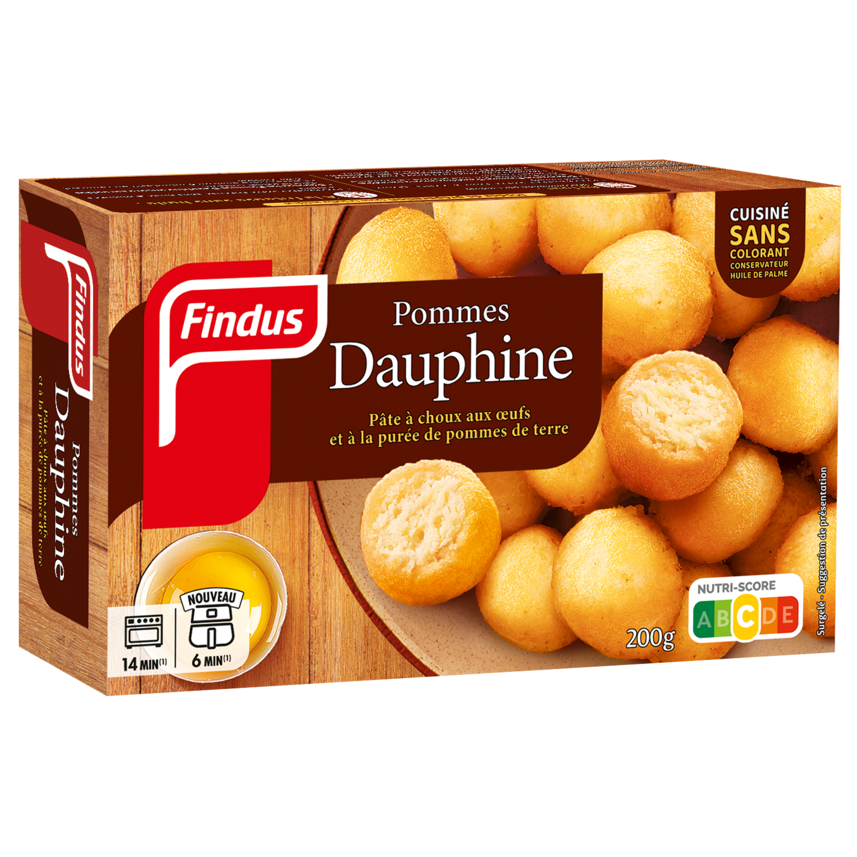 La recette des pommes Dauphine est traditionnellement composée d'une pâte à choux aux œufs et de purée de pommes de terre. Findus la revisite en vous proposant des pommes Dauphine moelleuses au cœur léger, un vrai plaisir gourmand !