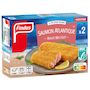 2 portions composées de morceaux de filets de Saumon Atlantique (Salmo salar) élevé en Norvège, en forme de filet, panées, préfrites, surgelées.
