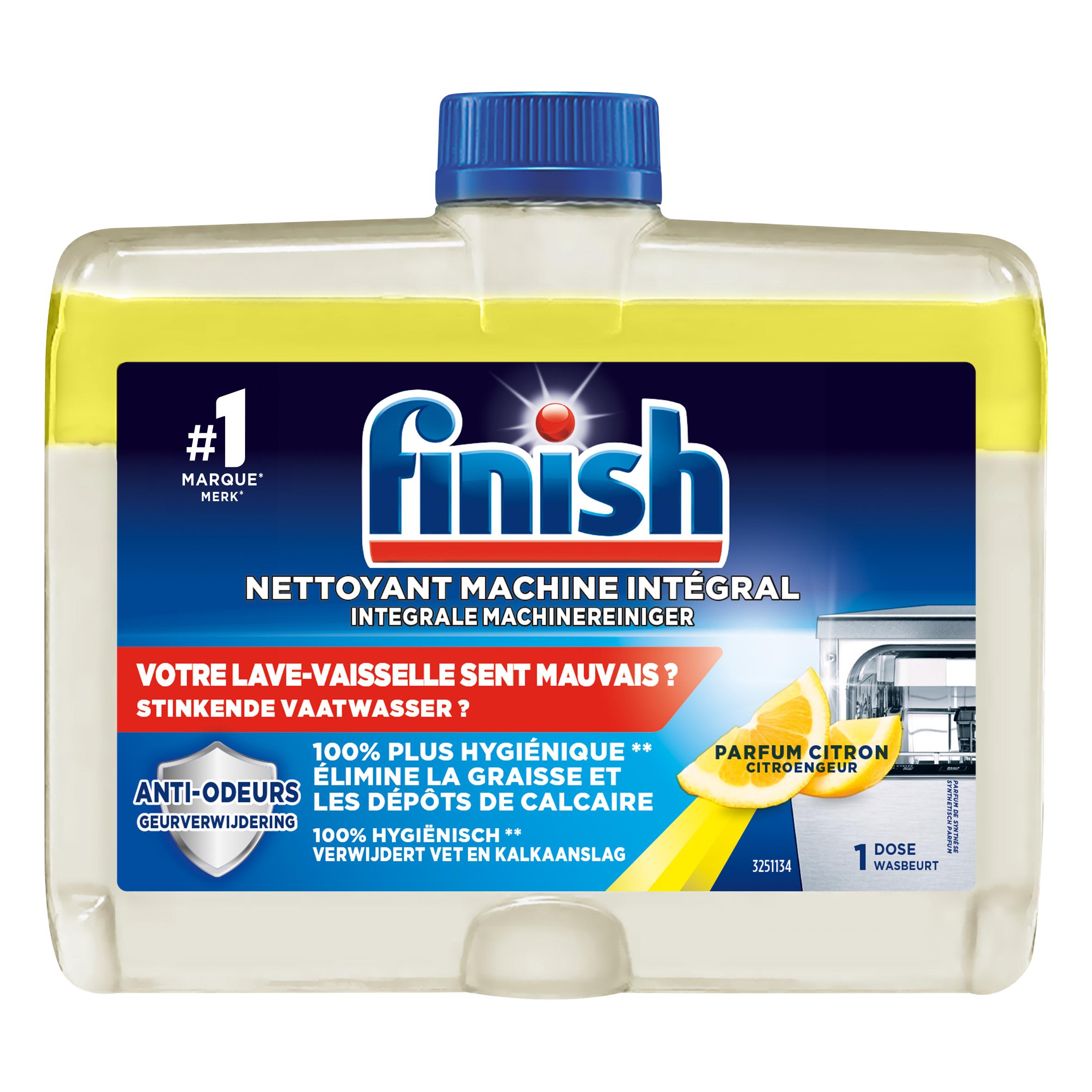 Lavage après lavage, le calcaire et la graisse s'accumulent dans le filtre et la tuyauterie de votre lave-vaisselle. Cela peut causer de mauvaises conditions d'hygiène et le développement de mauvaises odeurs. Grâce à sa puissante formule biphase, Finish Nettoyant Lave-vaisselle Intrégral Citron nettoie en profondeur la saleté incrustée et les dépôts de calcaire, tout en laissant un parfum frais de Citron.