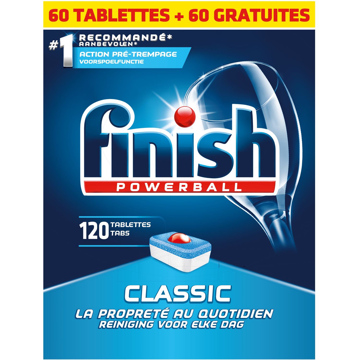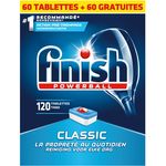 Finish Classic 60+60 gratuites Tablettes Classic nettoyantes et anti tâches pour vaisselle.
