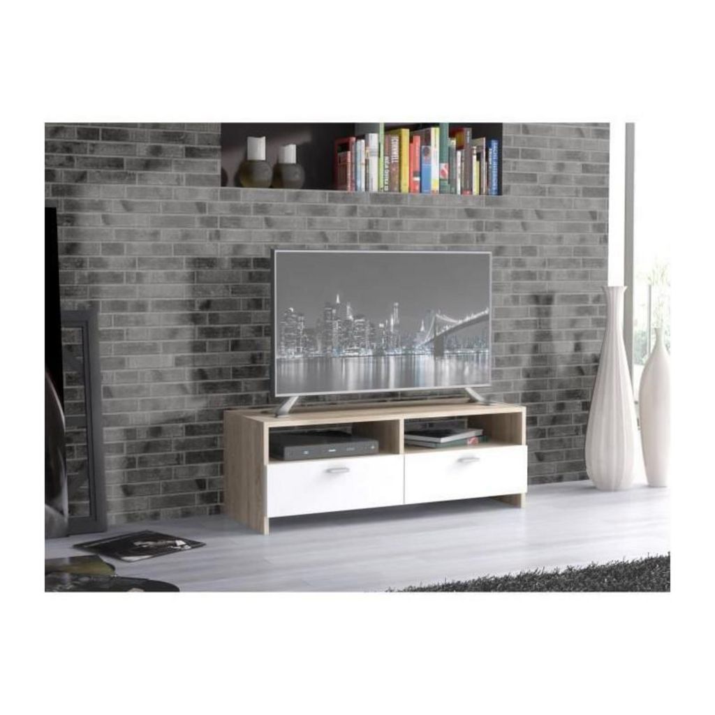 FINLANDEK Meuble TV HELPPO contemporain blanc mat et decor chene - L 95 cm