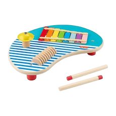 [Cet avis a été recueilli en réponse à une offre.] La table basse musicale en bois qui combine trois instruments de percussion dans un même jouet. C’est plus amusant!🥰 Mon loulou qui aime la musique adore ce jouet qui est robuste et adapté aux petites mains. Il explore différents sons sensoriels qui contribuent au bon développement en stimulant ces sens artistiques. Le xylophone, la cymbale et le guïro sonnent parfaitement bien, sans être trop bruyants. La taille est parfaite pour qu'il la soulève tout seul et transportable. Jouet évolutif et simple d'utilisation. Le centre musical est compact et bien conçu. Le design est coloré et attrayant. Les matériaux sont de bonnes qualités, les pièces sont sécurisées donc aucun risque pour l'enfant. Ce jouet occupe bien l'enfant. Je suis satisfaite que cette table soit en bois, ce qui fait penser aux jouets Montessori.