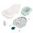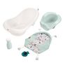 ?Comprend un hamac en tissu doux pour les nouveau-nés, un coussinet pour mieux caler les nourrissons et un siège pour aider les bébés plus grands à tenir assis. ?Comprend une bouteille en plastique mou et un verre verseur en forme de baleine pour les jeux dans l’eau et pour rincer bébé