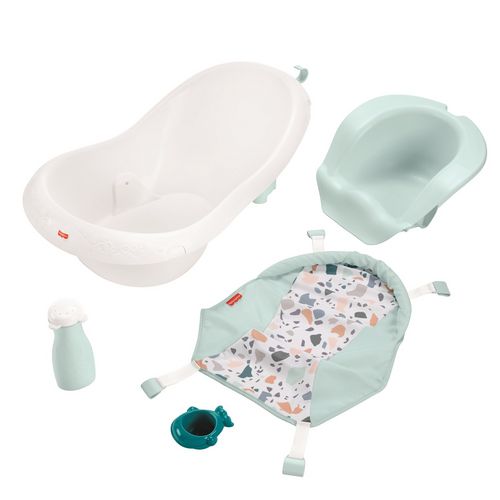 À mesure que votre nouveau-né grandit pour devenir un bébé, le rituel du bain passe d’une petite immersion dans l’eau chaude à une aventure en haute mer, jusqu’au geyser en compagnie d’une baleine. La baignoire évolutive 4en1 Terrazzo de Fisher-Price® vous accompagnera dans t