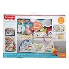 - 1 tapis d'éveil avec : 7 jouets dont 3 véhicules, 2 animaux, 2 accessoires pour le jeu d’imitation.