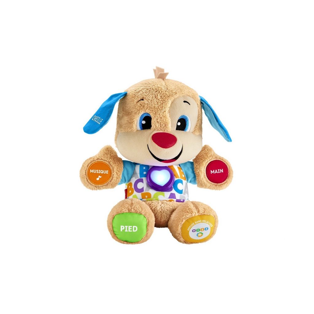 - Les mains, le pied, l'oreille et le coeur lumineux de Puppy réagissent au toucher de bébé (5 activations en tout!)