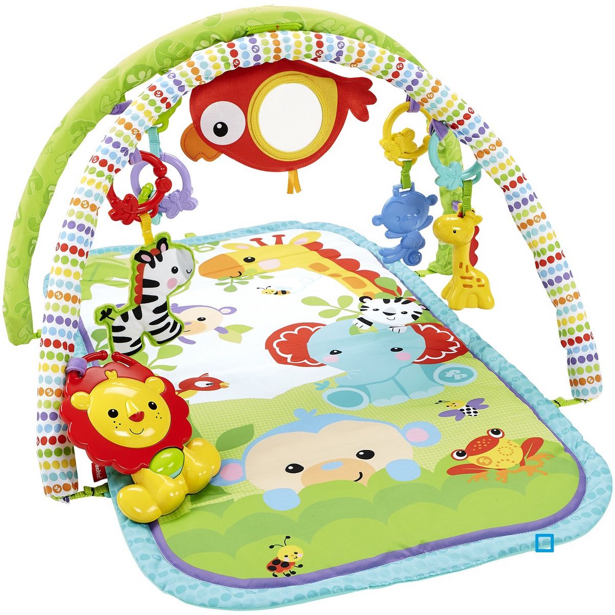 La Tapis Amis de la Jungle de Fisher-Price est un tapis d'activités transportable.Bébé peut jouer sur le ventre et admirer les jolis dessins colorés qui se trouvent sur le tapis. Sur le dos, il sera bien occupé à manipuler les jouets suspendus. Ces petits jouets étant détachables, bébé pourra les prendre dans ses mains et jouer assis. Émet des sons et de la musique !