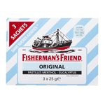 Y'A PAS PLUS FORT : Amateurs de sensations fortes, les pastilles Fisherman's Friend sont faites pour vous ! Copain, camarade, acolyte, meilleur ami ou alter ego : peu importe le petit nom que vous nous donnez. Fisherman's Friend reste à vos côtés pour vous rappeler votre force. Et comme tout véritable ami, nous sommes là pour vous, dans les bons moments et les moins bons. Préparez-vous à affronter vos défis du jour. Gardez la tête froide, montrez votre courage, ayez de l'audace, soyez vous-même et profitez du moment présent. Peu importe ce que la vie vous réserve... « Never be without a friend » (Ne vous retrouvez jamais sans ami). Fisherman's Friend Original avec édulcorants : Une sensation intense dans la gorge, une pointe de fraîcheur sur la langue et un souffle glacé grâce à l'association du menthol et de l'eucalyptus.