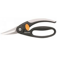 Fiskars 1003032 Cisaille à poisson Fiskars 1003032 robuste et permet de préparer tous les poissons. Ses lames sont striées et incurvées pour découper sans dérape. La poignée ergonomique antiglisse, droitier/gaucher, procure un grand confort d'utilisation. Un ressort assure une coupe puissante et le