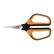 Les sécateurs Fiskars sont dotés de lames précises qui vont jusqu',au bout de la pointe des coupes nettes et saines dans. Les lames en acier inoxydable entièrement trempées, rectifiées avec précision, restent tranchantes plus longtemps, même en cas d',utilisation intensive. Les points de contact SoftGrip&trade, sur la poignée améliorent le confort et le contrôle et la conception de la poignée convient aux utilisateurs gauchers et droitiers. Le sécateur est idéal pour les coupes complexes de plantes et de fleurs lors de la coupe et du façonnage.