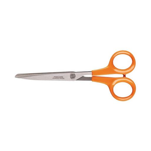 Les ciseaux Classic Fiskars aux anneaux orange sont la référence en matière de qualité. Les anneaux moulés ergonomiques au design unique breveté permettent une ergonomie et un confort élevé. Les lames en acier inoxydable de la plus haute qualité sont fabriquées en Finlande, elles sont forgées et trempées à des températures extrêmes durant le processus de fabrication. Elles garantissent une efficacité de coupe durable. Elles sont facettées et affûtées à 60° pour un tranchant de longue durée et une précision de coupe parfaite.Vis pour ajuster les lames en fonction de l',épaisseur des matériaux: améliore la performance de coupe. Pour des découpes quotidiennes sur des matériaux légers : papier, carton léger, tissu, ficelle. Ambidextres.