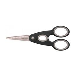 Fiskars 1003034 NOIR Ciseaux de cuisine 2 en 1 1003034 noir Fiskar. Ses anneaux ergonomiques, avec revêtement intérieur antiglisse, assurent une prise en main sûre. Robuste, ses lames striées avec encoche permettent de découper facilement sans déraper. Son anneau central permet de dévisser les bouteilles.