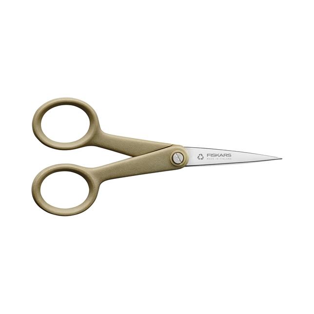 - Les ciseaux de couture Fiskars ReNew sont composés de matériaux recyclés (80 %) et renouvelables (13 %) pour un confort et une performance de coupe uniques