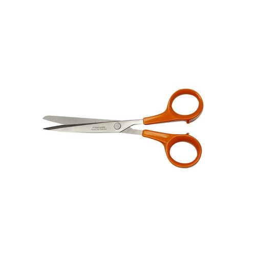 Fiskars 1000816 Le ciseaux multi-usages 1000816 de Fiskars léger possédant une longueur de lame adaptée pour couper du papier, du carton et des emballages. Précision et propreté de coupe grâce aux longues lames tranchantes en acier inoxydable : une lame pointue et une lame arrondie. Prise en main sûre et confortable grâce aux anneaux ergonomiques.Convient pour les droitiers et les gauchers.
