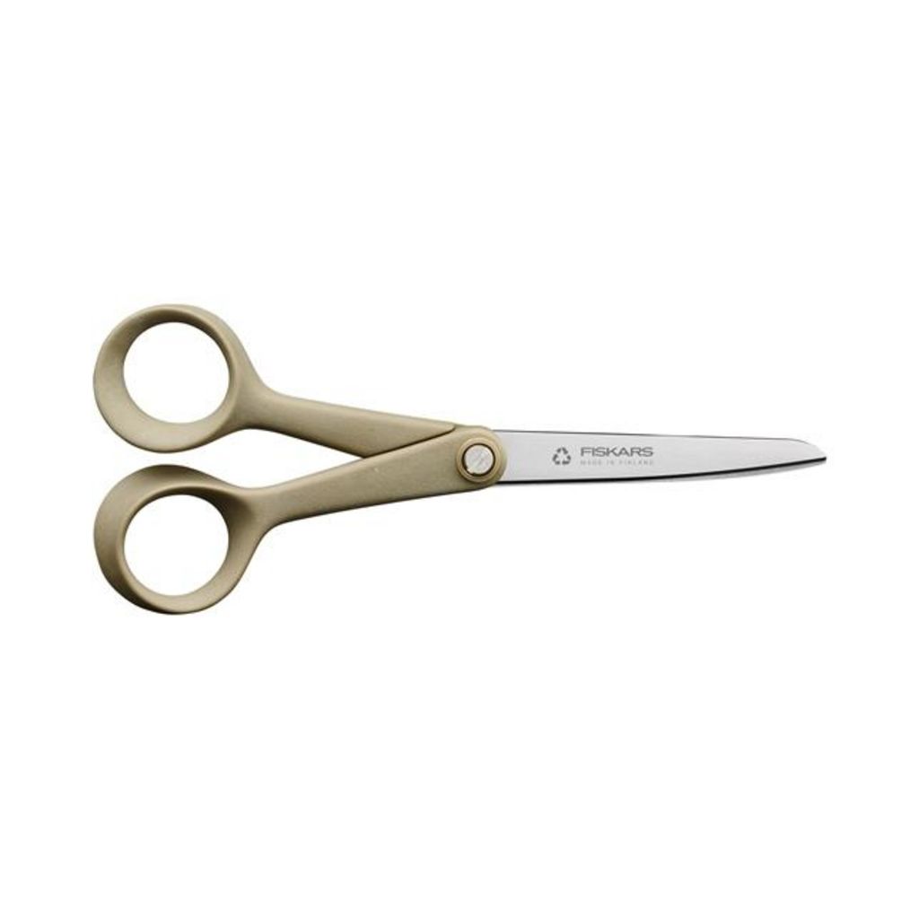 - Les petits ciseaux universels Fiskars ReNew sont composés de matériaux recyclés (80 %) et renouvelables (13 %) pour un confort et une performance de coupe uniques