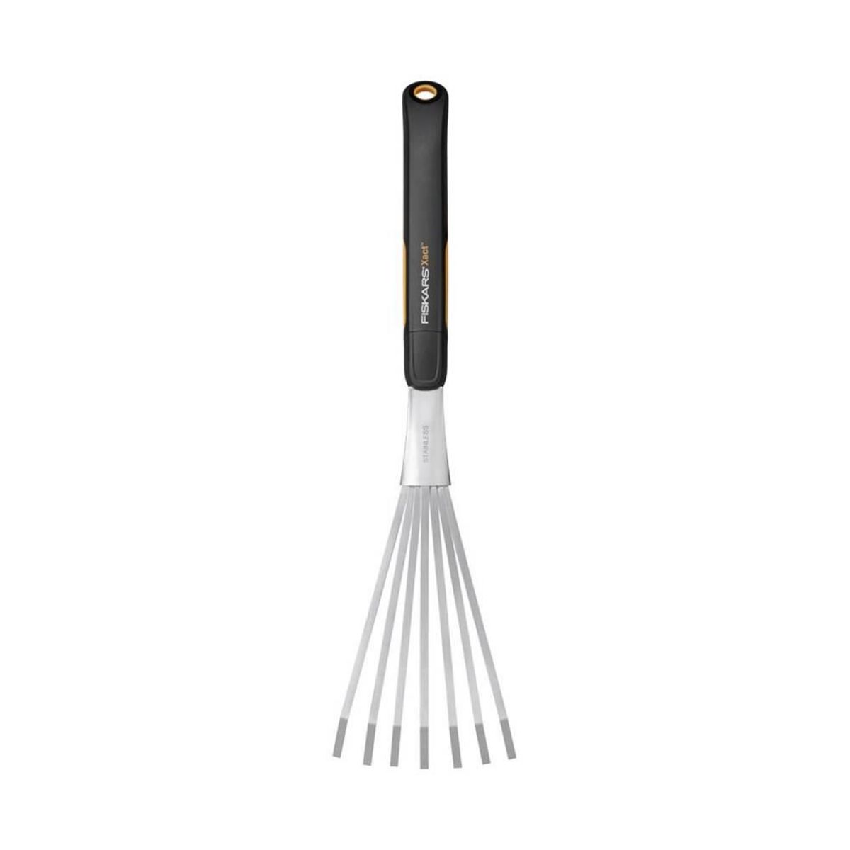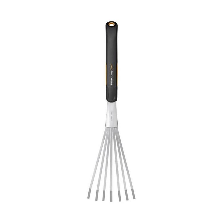 Le râteau à main Xact est l',outil idéal pour ratisser les feuilles et les mauvaises herbes dans les petits parterres de fleurs et les zones difficiles d',accès. La tête en acier inoxydable à sept branches offre une précision et un contrôle optimales. La poignée longue et dotée d&rsquo,un Softgrip&trade, garantit un confort et une efficacité à toute épreuve.