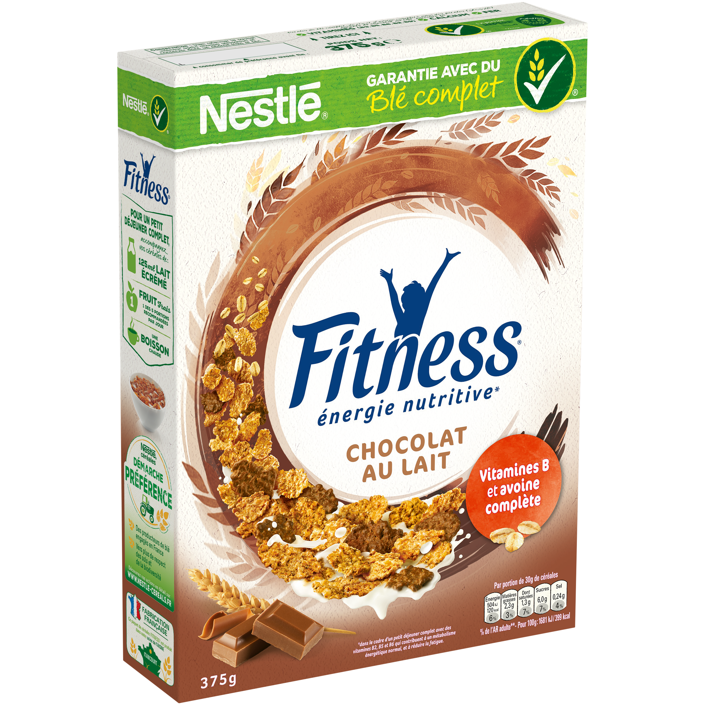 Pétales de blé complet, de riz et d'avoine complète avec des pétales (36,25%) enrobés de chocolat au lait, enrichis en vitamines (B3, B5, B6, B2, B9), calcium, fer Vos céréales FITNESS ont été élaborées à partir de délicieux ingrédients sélectionnés avec soin, du blé 100% complet, des flocons d’avoine complète et de délicieuses pétales au chocolat au lait ! Source de fibres, elles contiennent également des vitamines B, pour de l’énergie nutritive*.*Dans le cadre d'un petit déjeuner complet avec des vitamines B2, B5 et B6 qui contribuent à un métabolisme énergétique normal, et à réduire la fatigue. Il est important d’avoir une alimentation variée et équilibrée et un mode de vie sain