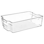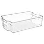 Informations Techniques : Dimensions : L. 31 x l. 21,2 x H. 9 cm Matière : Polyéthylène Spécificités : Capacité : 6 L Utilisation pour frigo, congélateur ou placard Poignée pour faciliter la prise en main Nettoyage facile à la main Poids : 0,396 kg Couleur : Transparent