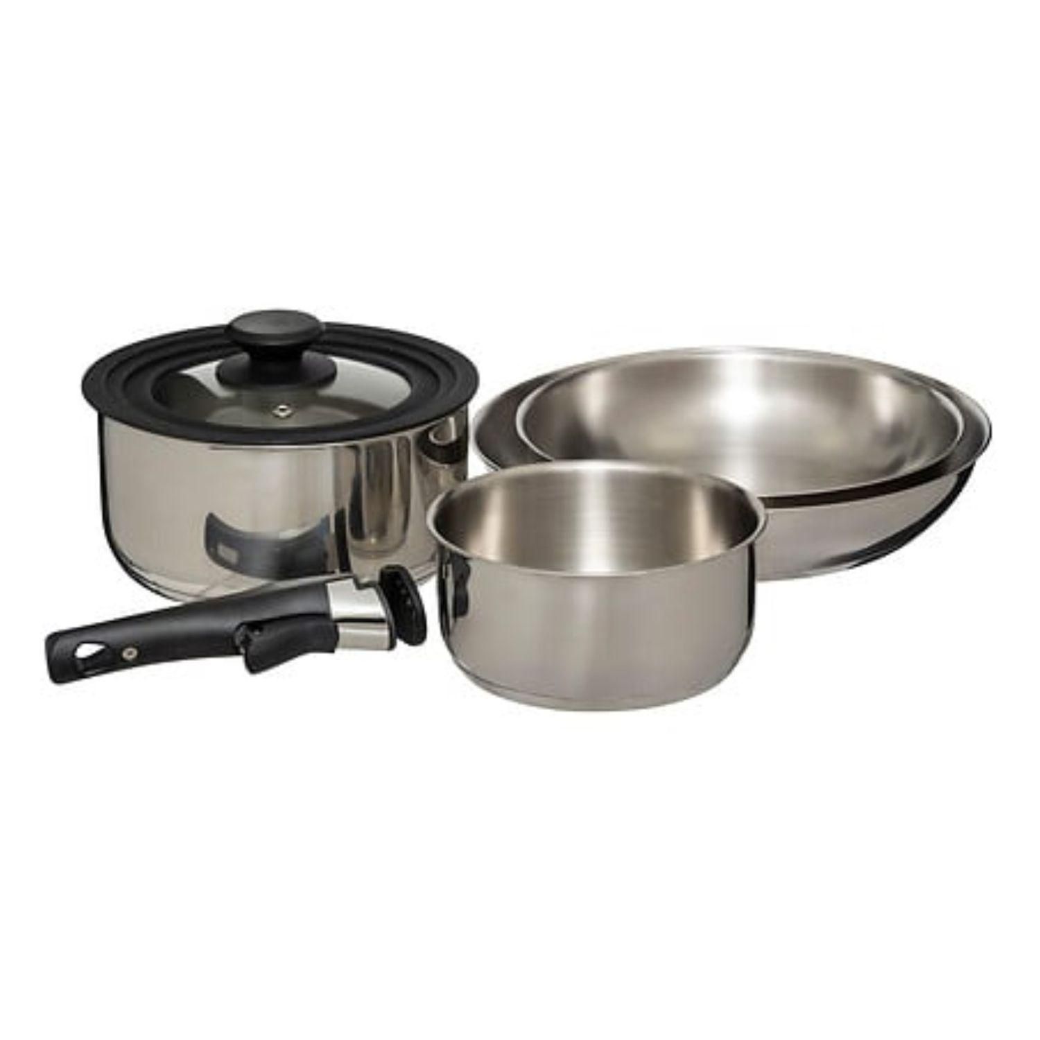 Batterie de cuisine en inox avec poignée amovible - 6 pièces