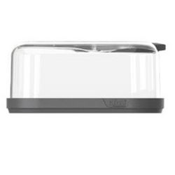 Informations Techniques : Dimensions : L. 15,7 x l. 10 x H. 7,1 cm Épaisseur du couvercle : 2 mm Épaisseur de la base : 2,2 mm Matières : Polypropylène & Polystyrène Spécificités : Pratique & Utile Beurrier & Couteau Clip hermétique Gradué tous les 25g pour aider à la découpe Rainure pour circulatio