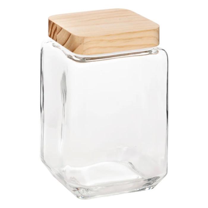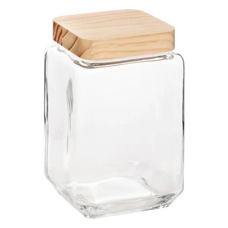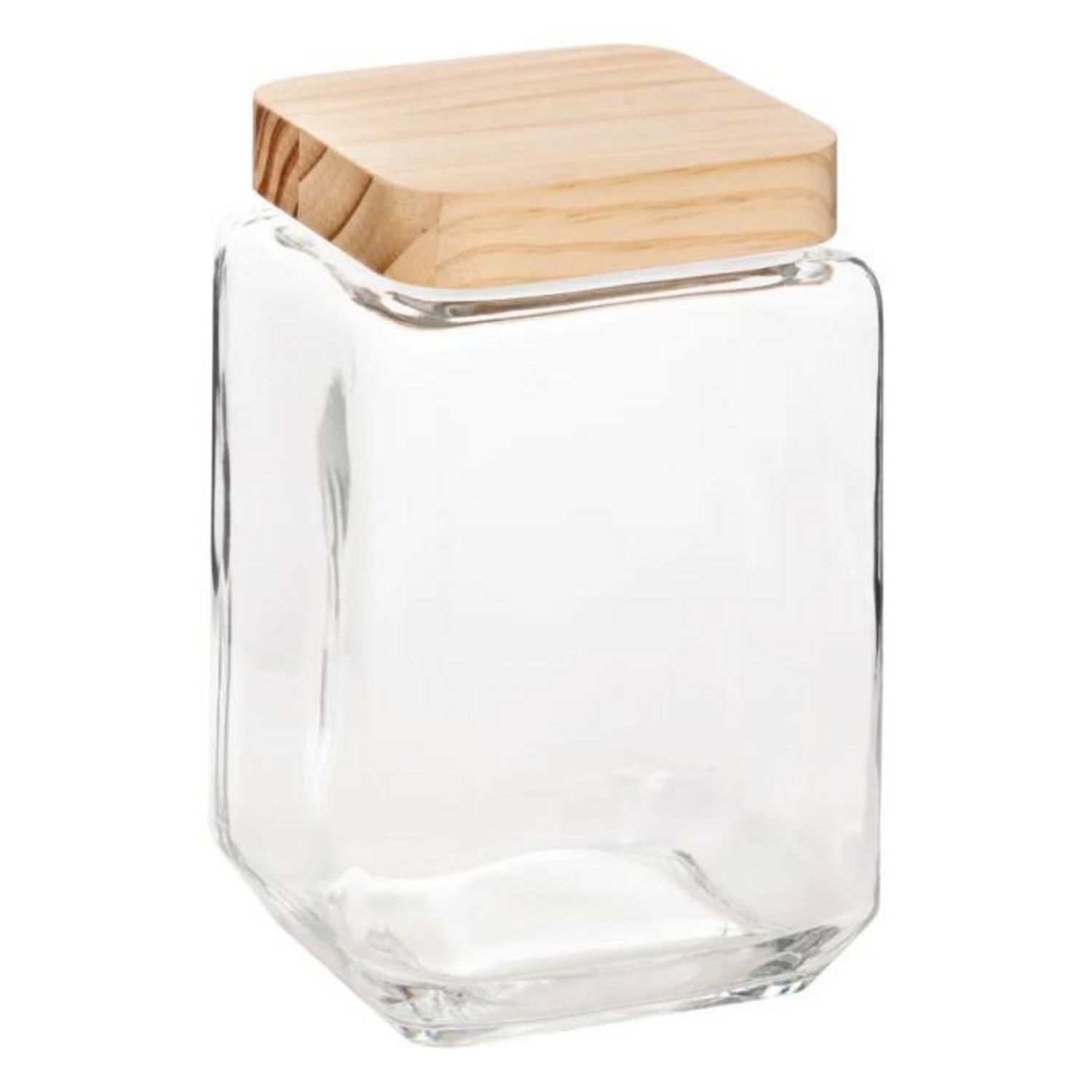 Bocal Carré Verre & Pin Nyna 1,7L Transparent