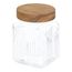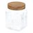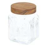 Informations Techniques : Dimensions : D. 11 x H. 15 cm Matières : Verre & Bois (Acacia) Spécificités : Pratique & Utile Bocal de conservation rond Avec couvercle en bois Motifs arches en relief Contenance : 1 L Poids : 0,57 kg Couleur : Transparent
