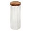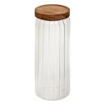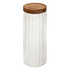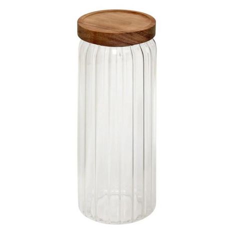 Informations Techniques : Dimensions : D. 9 x H. 28,9 cm Matières : Bocal : Verre borosilicate Couvercle : Bois (Acacia) Spécificités : Pratique & Utile Bocal de conservation Couvercle hermétique Pot en verre rainurée Contenance : 1,3 L Poids : 0,47 kg Couleur : Transparent & Naturel