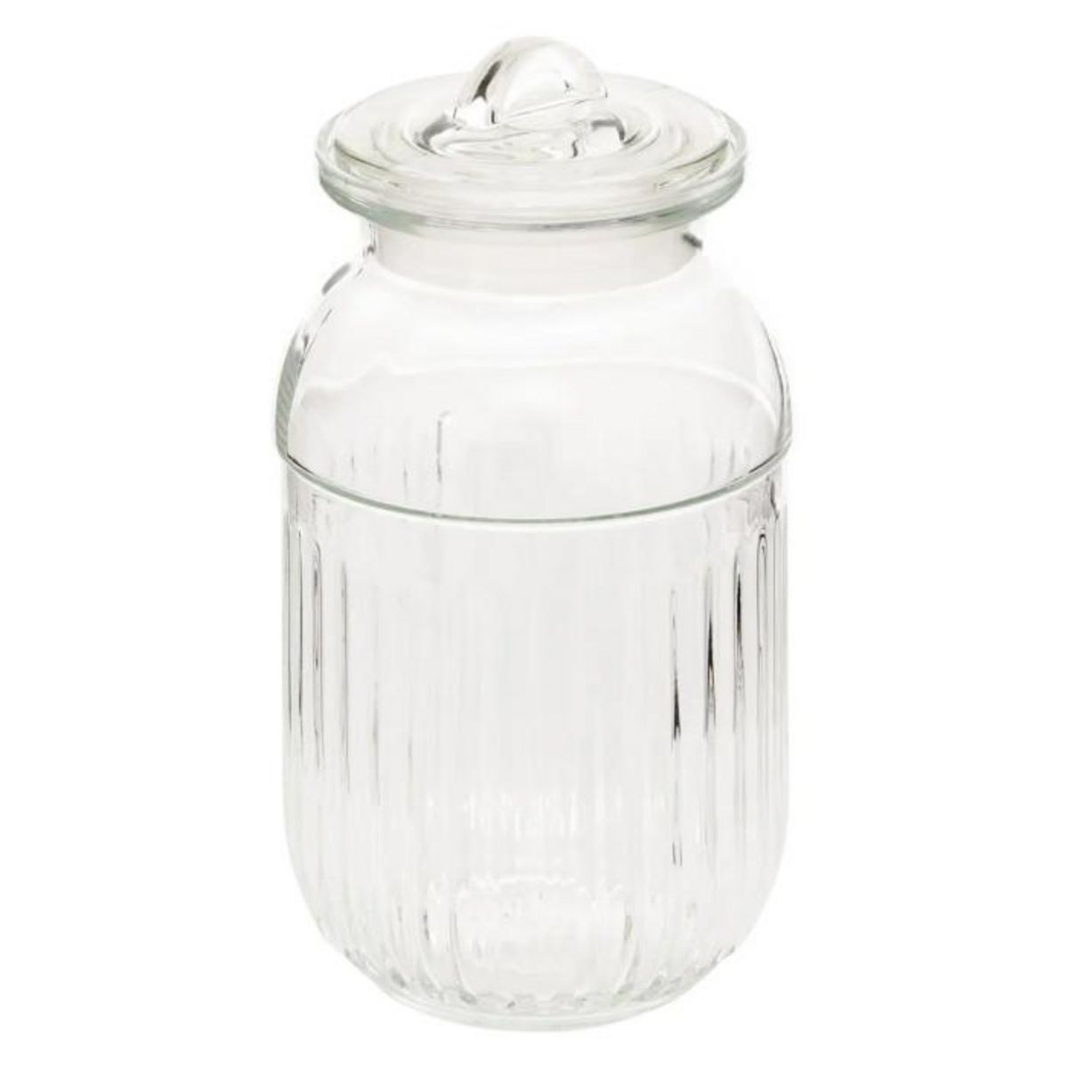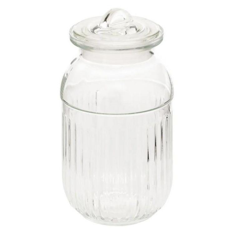 Informations Techniques : Dimensions : D. 12 x H. 22,7 cm Matière : Verre Spécificités : Pratique & Utile Bocal de conservation rond Avec couvercle Capacité : 1,5 L Poids : 0,88 kg Couleur : Transparent