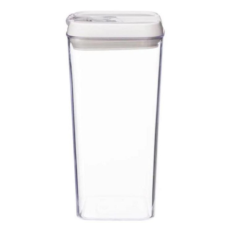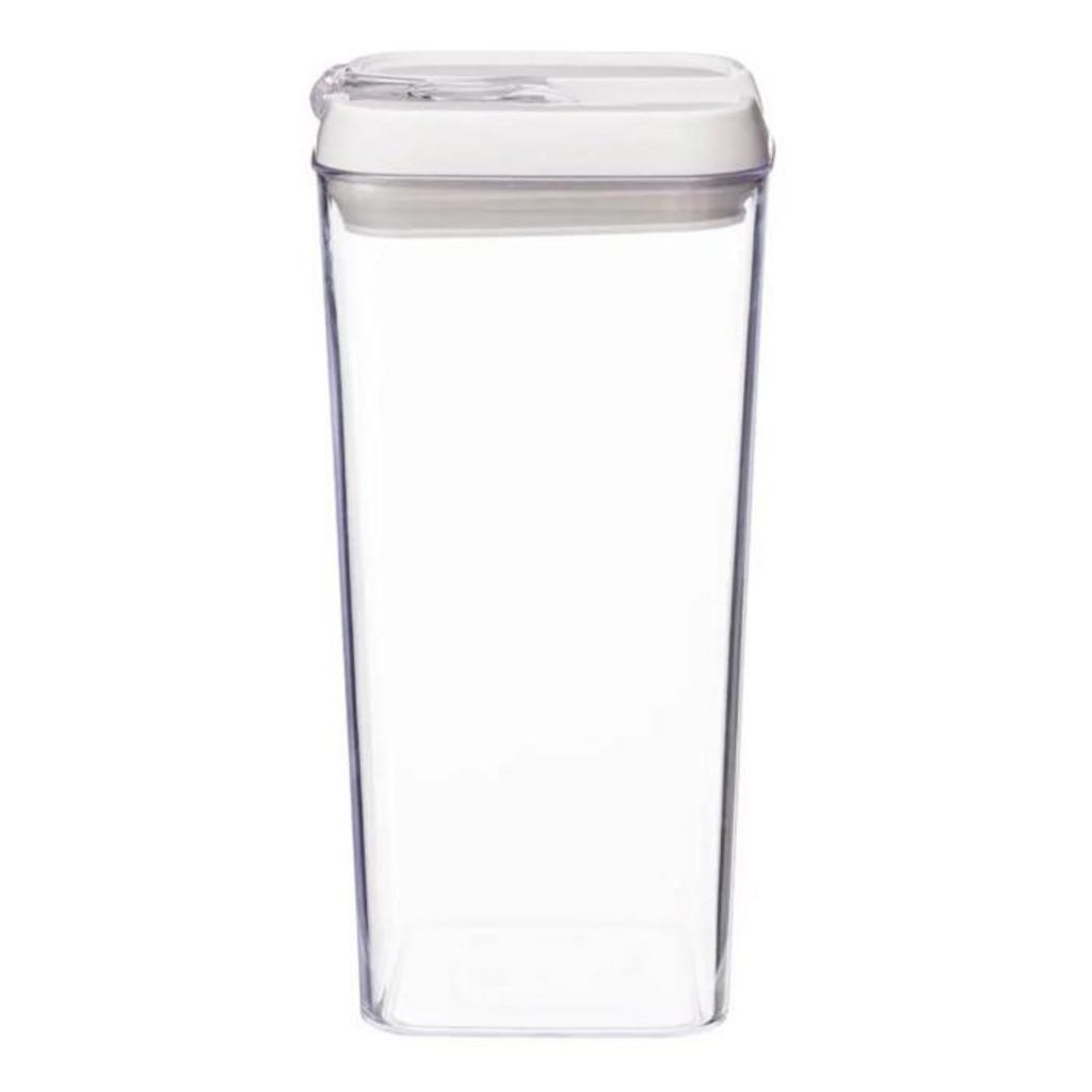 Informations Techniques : Dimensions : L. 10 x l. 10 x H. 20,5 cm Matières : Polystyrène, Silicone & Polypropylène Spécificités : Bocal Hérmetique Pratique & Astucieux Contenance : 1,2 L Poids : 0,235 kg Couleur : Blanc & Transparent