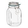 Informations Techniques : Dimensions : L. 13 x l. 9,8 x H. 18 cm Matière : Verre Spécificités : Pratique & Utile Bocal de conservation Avec graduation Languette large Joint en silicone Fermeture à clip Capacité : 1 L Poids : 0,77 kg Couleur : Transparent