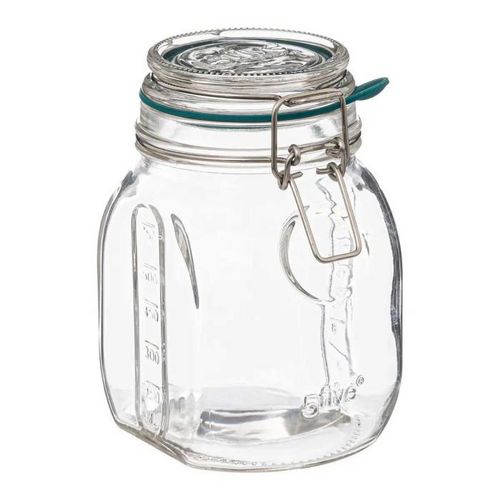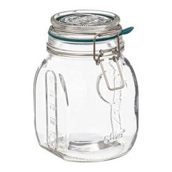 Informations Techniques : Dimensions : L. 12,3 x l. 8,4 x H. 15,5 cm Matière : Verre Spécificités : Pratique & Utile Bocal de conservation Avec graduation Languette large Joint en silicone Fermeture à clip Capacité : 750 ml Poids : 0,61 kg Couleur : Transparent