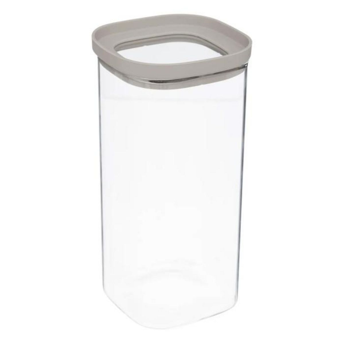 Informations Techniques : Dimensions : L. 11 x l. 11 x H. 22,3 cm Matières : Verre & Silicone Spécificités : Pratique & Utile Bocal de conservation carré Avec couvercle hermétique Capacité : 1,6 L Poids : 0,46 kg Couleur : Transparent & Beige