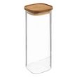 Informations Techniques : Dimensions : L. 10,7 x l. 10,7 x H. 26 cm Matière : Verre Spécificités : Pratique & Utile Bocal de conservation Avec couvercle hermétique Forme carrée Capacité : 2 L Poids : 0,55 kg Couleur : Transparent & Marron